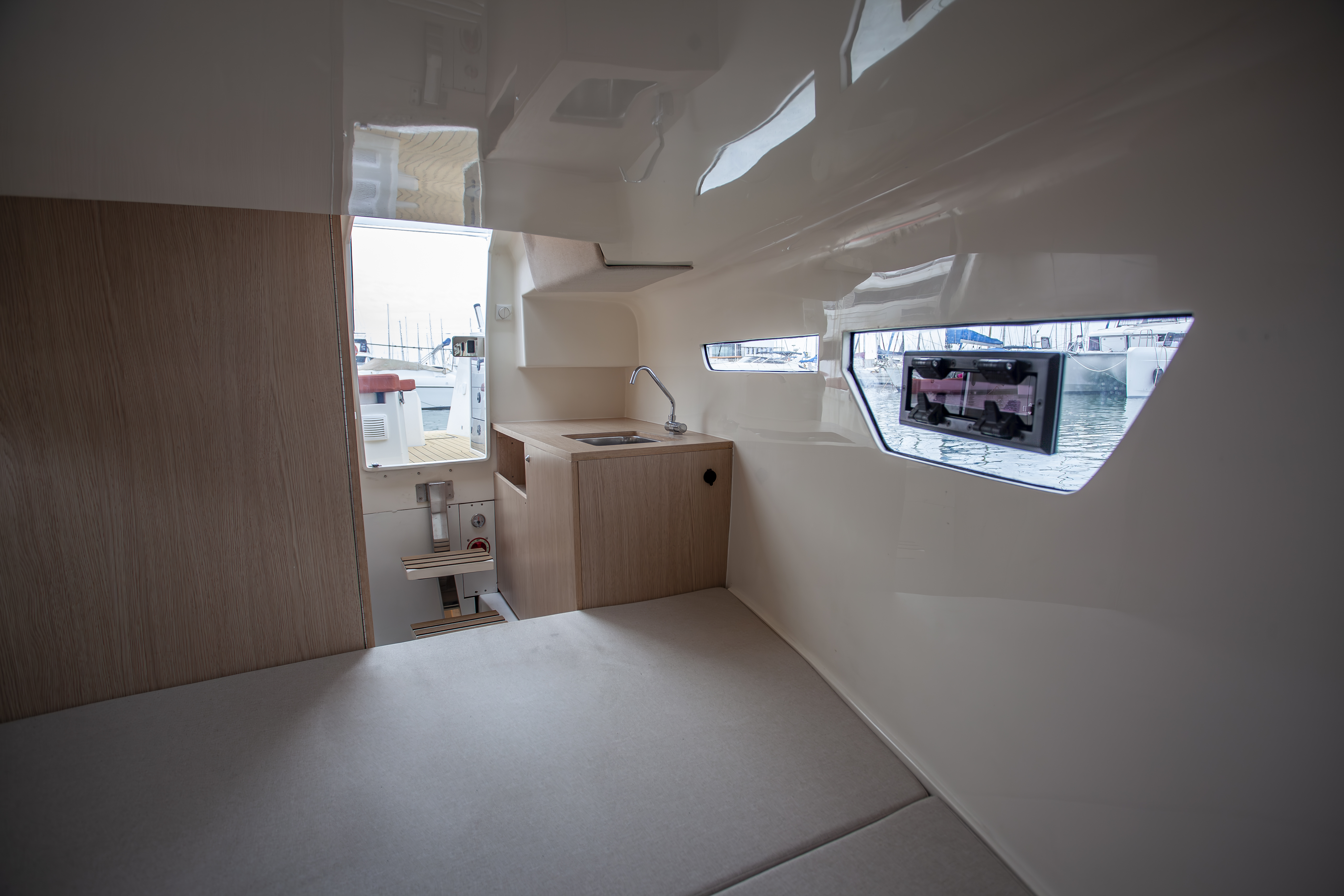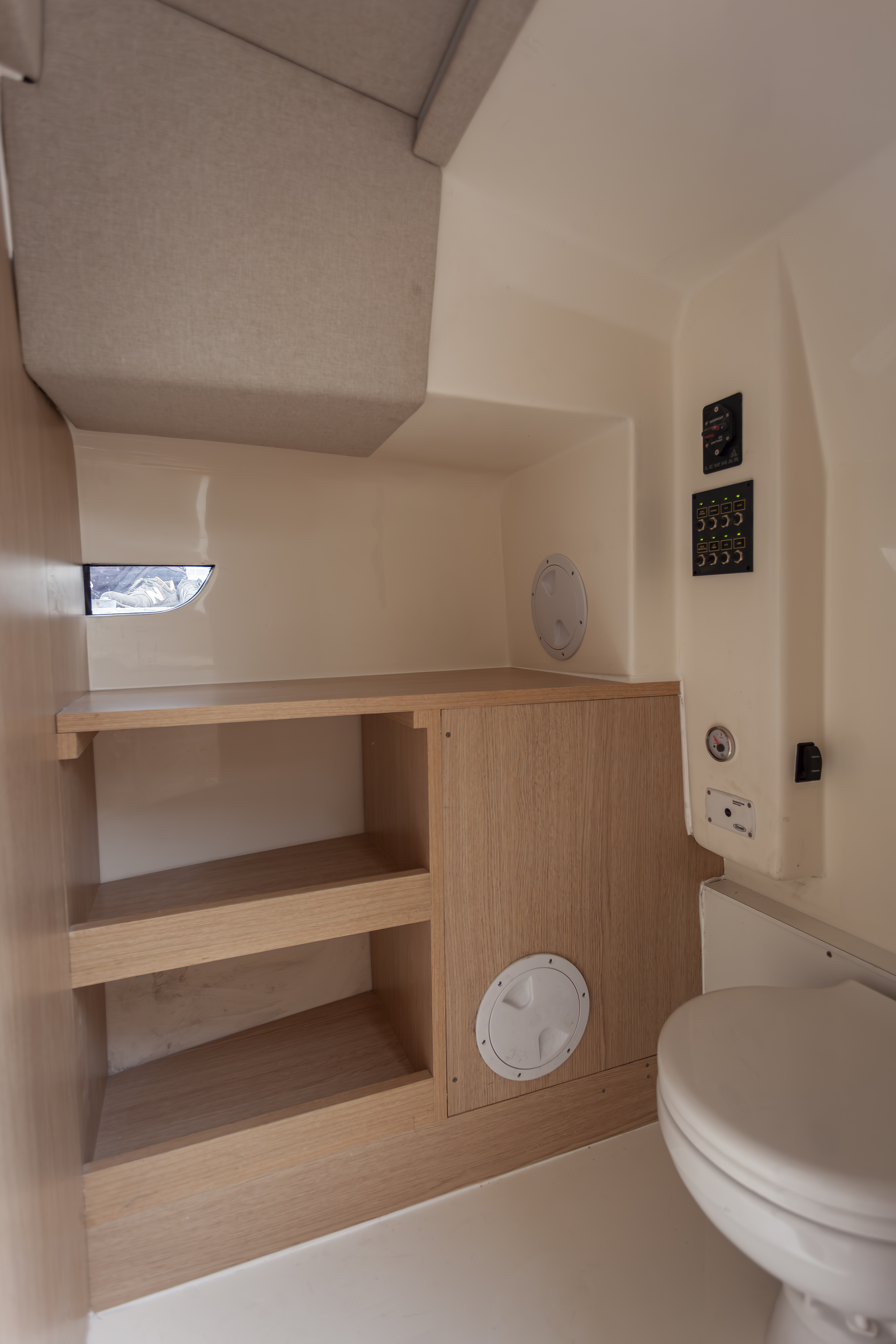Das großzügige Sonnendeck am Bug und Heck lädt zum Entspannen ein, während clevere Stauraumlösungen – wie die Kabinenschublade mit Deckel und der variable Achtersitz – für Ordnung und Flexibilität sorgen. Die Pilotensitze, Edelstahl-Rückenlehnen und der umklappbare Fahrersitz bieten höchsten Komfort bei jeder Fahrt.